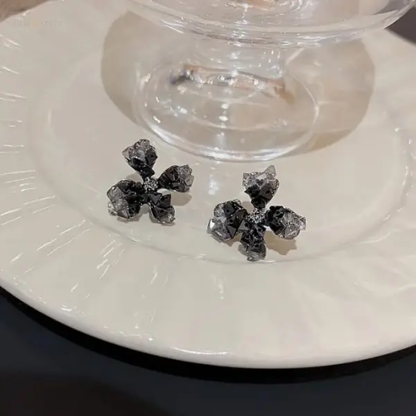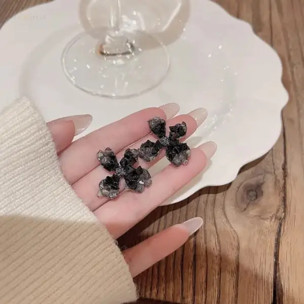 It’s short, chic, and captures the black floral elegance of the design. crafted with shimmering black and smoky crystals, adding a touch of drama and sophistication to any look.