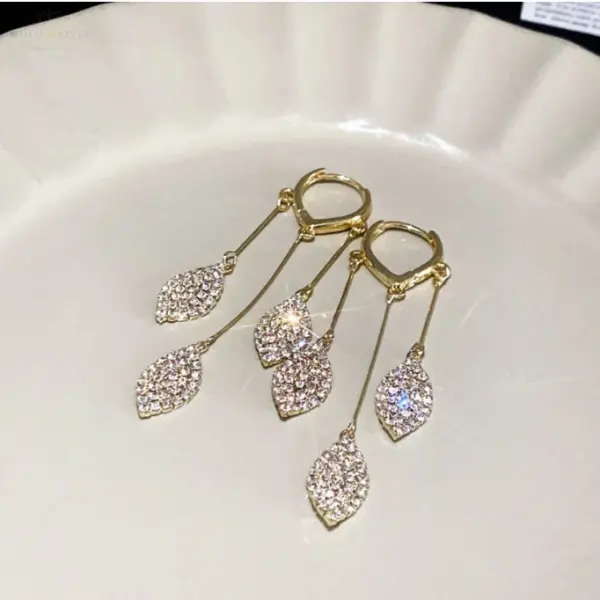 Gracefully dangling like leaves in a soft evening breeze, the Twilight Tails earrings capture attention with their twin crystal-studded charms suspended on golden threads. Light-reflective and fluid in motion, they add a touch of glamour and sophistication to any look—perfect for both candlelit dinners and chic daytime wear.